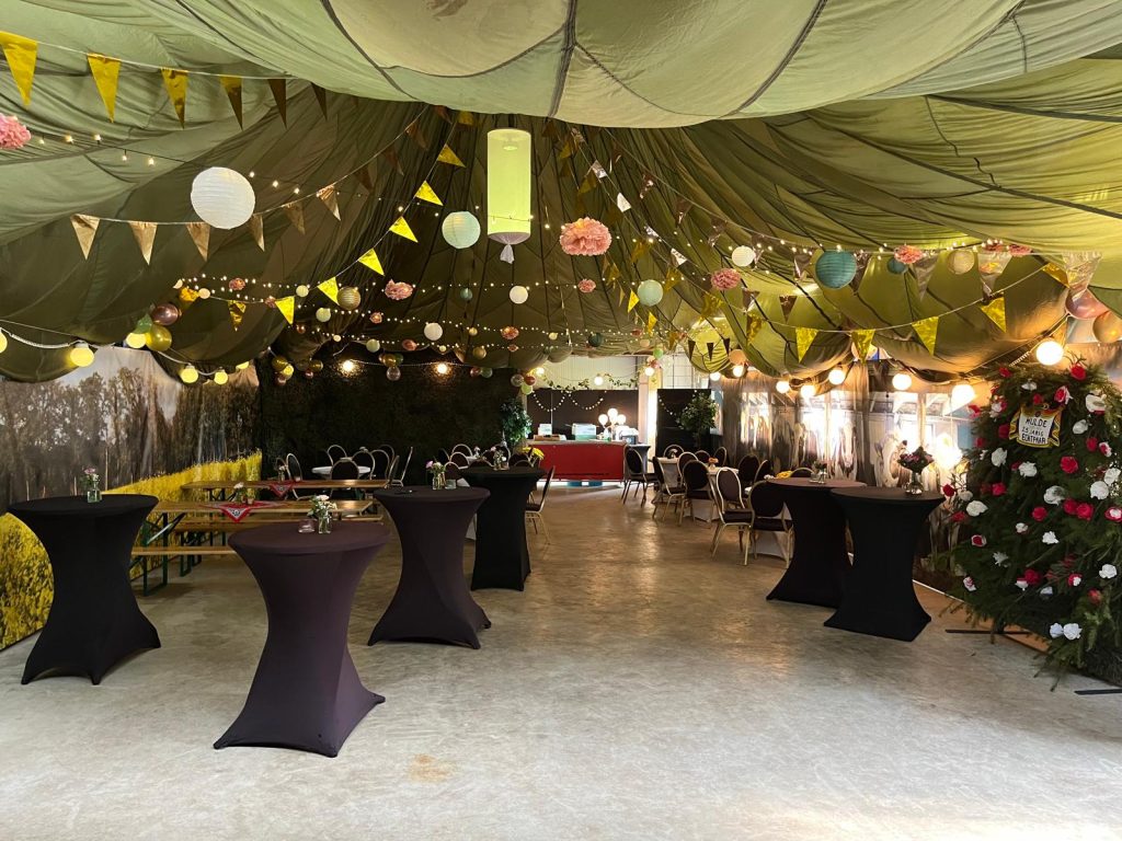 Wij hebben de beschikking over enkele parachutes die ingezet kunnen worden als slechtweer overkapping, denk dan bijvoorbeeld aan evenementen die in de openlucht gaan plaatsvinden.